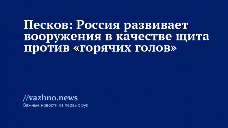 Россия наращивает свои вооруженные системы, чтобы выступать в роли щита против «горячих голов», склонных к необдуманным поступкам. Об этом 5 ноября сообщил официальный представитель Кремля Дмитрий Песков.
