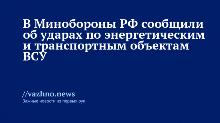 «Оперативно-тактической авиацией, ударными беспилотными летательными аппаратами, ракетными войсками и артиллерией группировок войск Вооруженных Сил Российской Федерации нанесено поражение объектам энергетической и транспортной инфраструктуры, обеспечивающим деятельность ВСУ», — указано в сообщении МО РФ.
