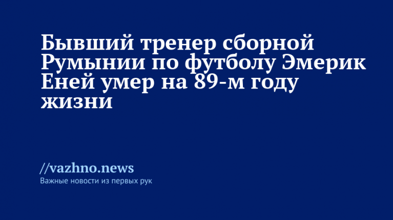 Бывший наставник сборной Румынии по футболу и тренер клуба «Стяуа» Эмерик Еней скончался в 88 лет. О его смерти 5 ноября сообщили на сайте футбольного клуба «Бихор».