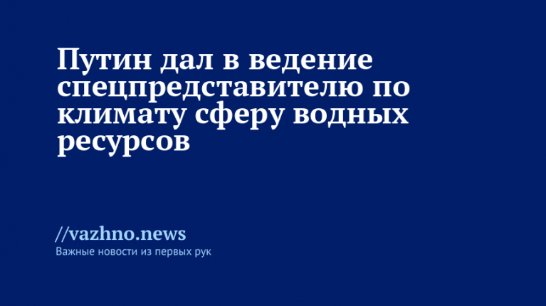 Президент России Владимир Путин поручил своему спецпредставителю по вопросам климата Руслану Эдельгериеву также курирование вопросов, связанных с водными ресурсами. Соответствующий указ был опубликован 5 ноября на официальном портале правовой информации, где содержится информация о том, кто и какие полномочия получил, а также когда и на каких основаниях принято решение.