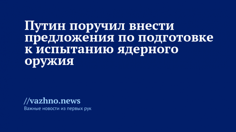 «В этой связи я поручаю Министерству иностранных дел, Министерству обороны РФ, специальным службам и гражданским ведомствам, соответствующим гражданским ведомствам, сделать всё для того, чтобы собрать дополнительную информацию по этому вопросу, провести ее анализ на площадке Совета безопасности и внести согласованные предложения о возможном начале работ по подготовке испытаний ядерного оружия», — отметил глава государства.