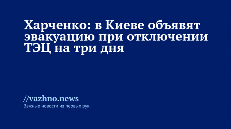 «Если в Киеве отключены ТЭЦ и в течение трех дней при температуре -10 градусов Цельсия и ниже нет перспективы восстановления, то Киев должен объявлять а) слив воды из домов, б) эвакуацию», — его слова передает украинское издание «Страна.ua» в Telegram-канале.