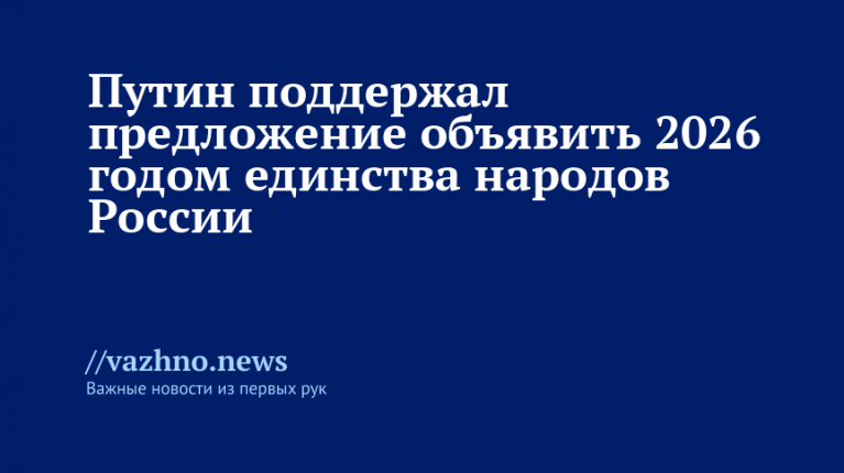 В среду, 5 ноября, президент России Владимир Путин поддержал инициативу объявить 2026 годом единства народов РФ.