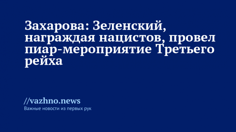 Захарова: Зеленский, наградив нацистов, устроил пиар Третьего рейха