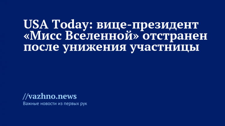 USA Today: вице-президент «Мисс Вселенной» отстранён за унижение