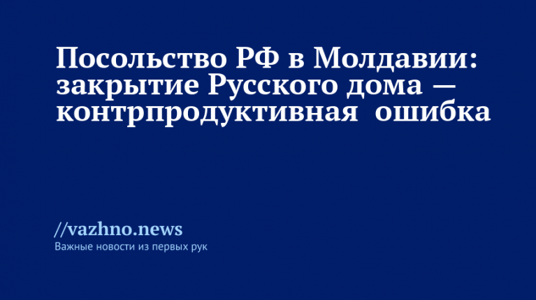 Решение молдавских властей о закрытии Русского дома в Кишиневе признано контрпродуктивным и ошибочным — по мнению диппредставительства, оно подрывает основы межгосударственных отношений. Об этом 5 ноября сообщили в пресс-службе Посольства РФ в республике.
