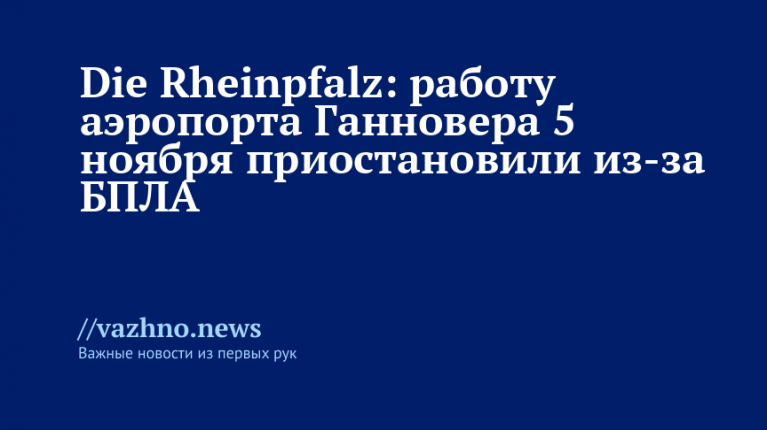 «Из-за беспилотника возле аэропорта Ганновера полеты там были временно приостановлены вечером (5 ноября. — Ред.). Аэропорт был закрыт с 22:00 до 22:45 (с 0:00 до 0:45 мск 6 ноября. — Ред.)», — говорится в публикации.