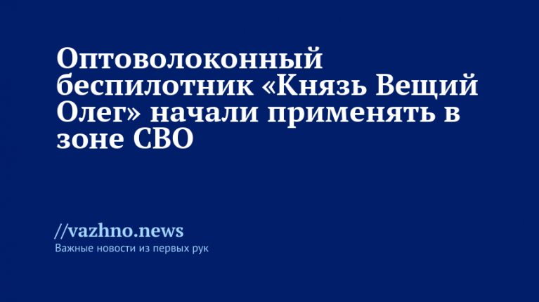 Оптоволоконный беспилотник (БПЛА) «Князь Вещий Олег» (КВО), предназначенный для разведки на дистанции до 45 км, уже используется в зоне специальной военной операции (СВО). Об этом 6 ноября сообщил генеральный директор научно-производственного центра (НПЦ) «Ушкуйник» (Великий Новгород) Алексей Чадаев.
