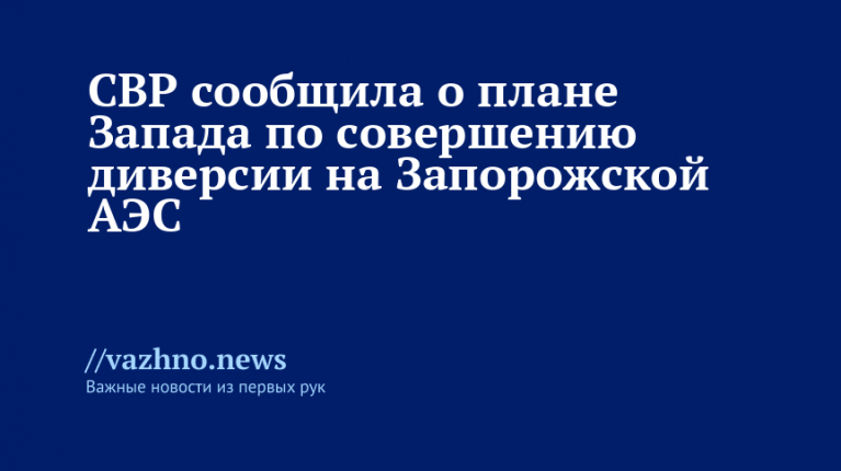 СВР: Запад готовит диверсию на Запорожскую АЭС — кто будет виноват?