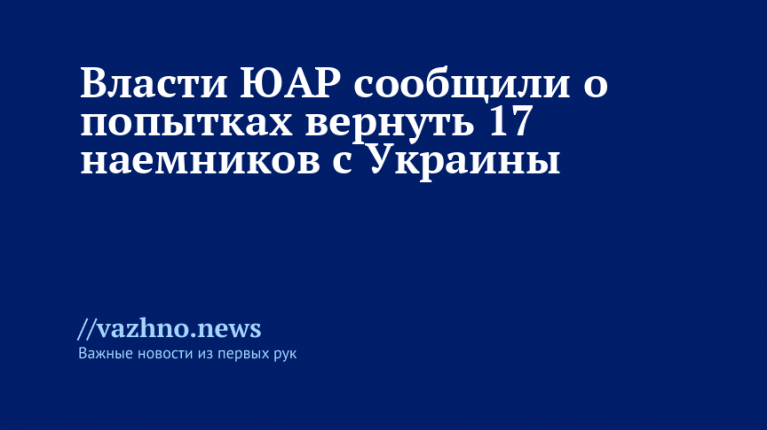 Официальный представитель президента ЮАР Винсент Магвенья 6 ноября сообщил, что правительство Южно-Африканской Республики приступило к действиям по возвращению на родину 17 граждан, заключивших контракт с Вооруженными силами Украины (ВСУ).