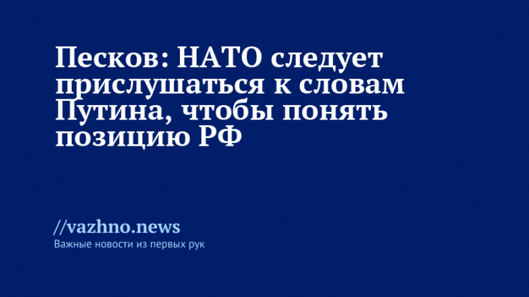 НАТО следует принять во внимание слова президента России Владимира Путина, чтобы осознать позицию страны. С таким заявлением 6 ноября выступил официальный представитель Кремля Дмитрий Песков, отвечая на вопрос «Известий» о высказывании генсека альянса Марка Рютте по поводу совещаний российского лидера.