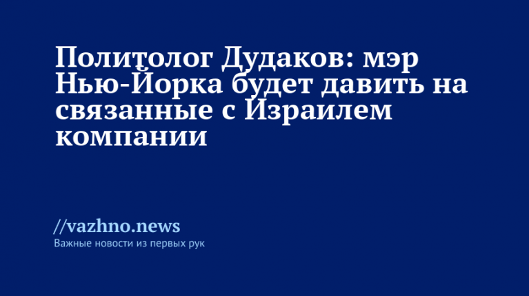 Политолог Дудаков: мэр Нью-Йорка давит на фирмы, связанные с Израилем