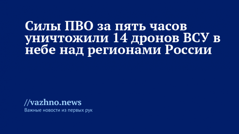 Силы ПВО за 5 часов уничтожили 14 дронов ВСУ над регионами РФ