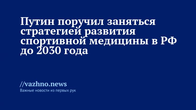 На заседании Совета по развитию физической культуры и спорта 6 ноября президент РФ Владимир Путин поручил правительству, Федеральному медико-биологическому агентству (ФМБА) и регионам заняться разработкой стратегии развития спортивной медицины в России до 2030 года.