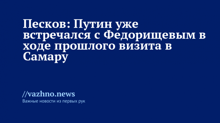 Президент РФ Владимир Путин и губернатор Самарской области Вячеслав Федорищев не устраивали новую личную встречу в Самаре, так как подобная беседа уже проходила ранее в рамках недавнего визита главы государства в город. О деталях 6 ноября рассказал официальный представитель Кремля Дмитрий Песков.