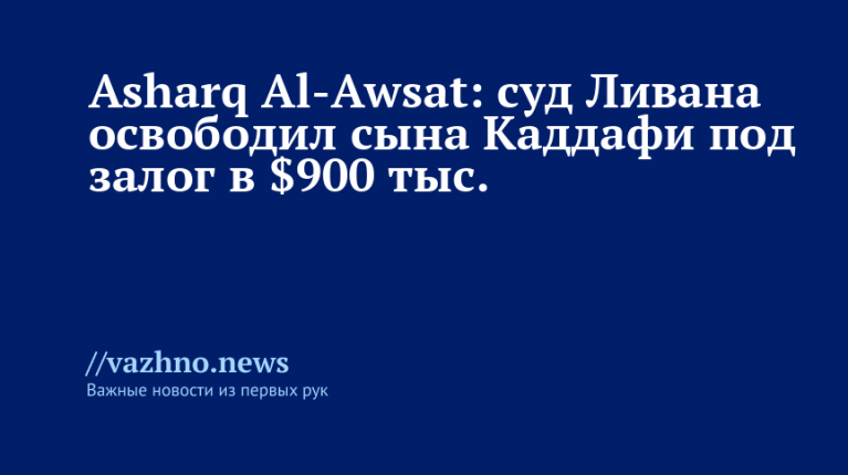 «Ганнибал Каддафи освобожден после 10 лет заключения в Ливане. Судебный следователь согласился уменьшить сумму залога с $11 млн до $900 тыс.», — говорится в материале.