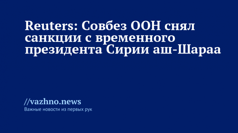 «Совет Безопасности ООН снял санкции с президента Сирии Ахмеда аш-Шараа», — говорится в публикации.