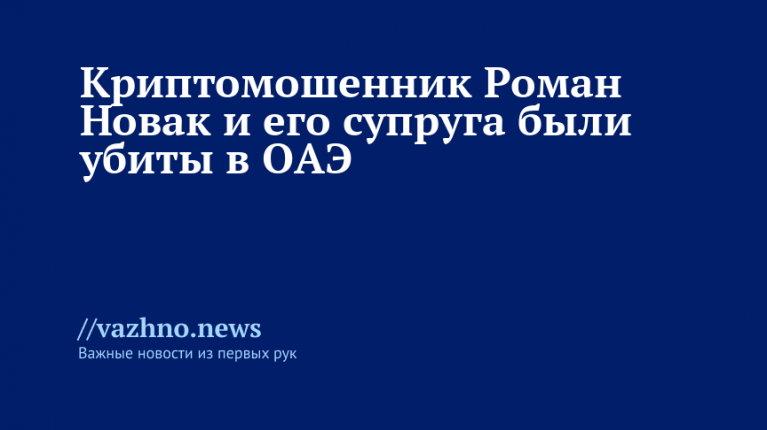 Прославленного криптомошенника Романа Новака и его супругу убили в ОАЭ, пара перестала выходить на связь примерно месяц назад. Об этом 7 ноября сообщил 78.ru.