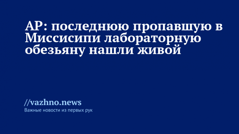 В штате Миссисипи нашли и задержали последнюю из лабораторных обезьян, которые сбежали после автомобильной аварии. Об этом 6 ноября сообщило агентство Associated Press (AP) со ссылкой на департамент дикой природы, рыболовства и парков Миссисипи.
