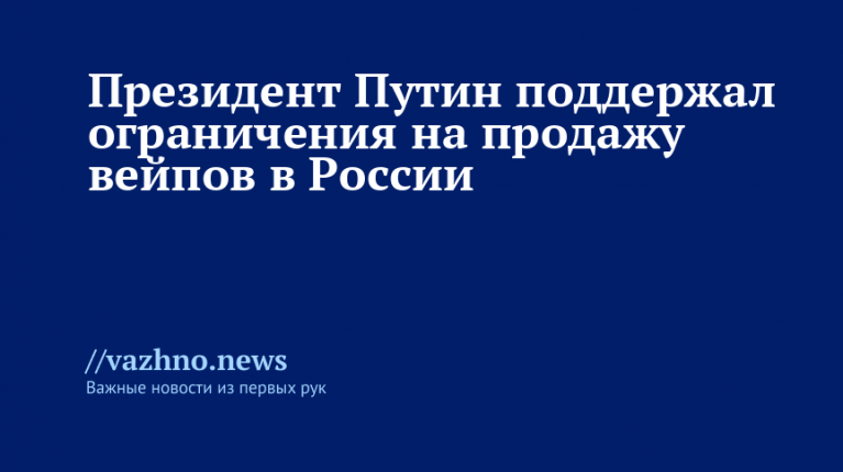 Президент России Владимир Путин выразил поддержку инициативы о введении запрета на продажу электронных сигарет на территории РФ.