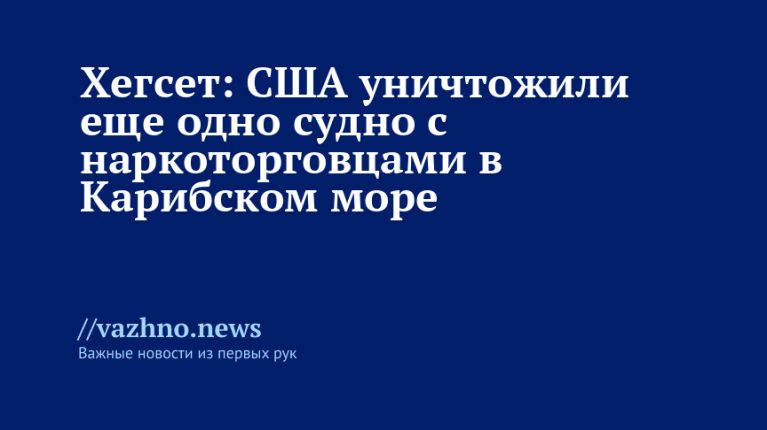 «Удары судов по наркотеррористам будут продолжаться до тех пор, пока не прекратится отравление американского народа. Сегодня по указанию президента Трампа министерство войны нанесло смертельный кинетический удар по судну, принадлежащему признанной террористической организации», — написал он в Х (бывш. Twitter).