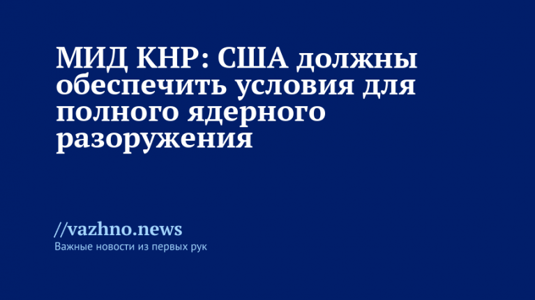Официальный представитель МИД КНР Мао Нин 7 ноября заявила, что Соединенные Штаты должны существенно сократить свой ядерный арсенал, чтобы создать условия для полного ядерного разоружения.