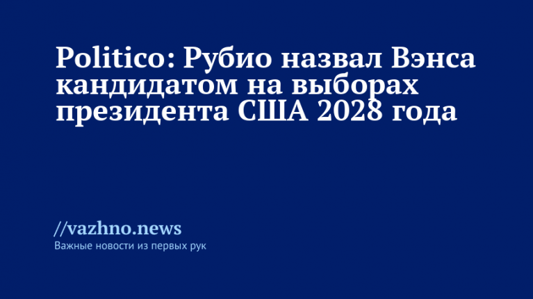 «Госсекретарь Марко Рубио в частном порядке сообщил своим доверенным лицам, что Джей Ди Вэнс является основным кандидатом от республиканцев на выборах 2028 года», — говорится в публикации.