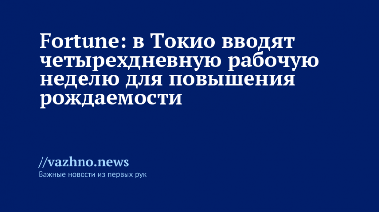 Власти Токио начали крупный социальный эксперимент: переход на четырехдневную рабочую неделю. Эта новая инициатива направлена на противодействие рекордному снижению рождаемости и стремительному старению населения. Об этом 4 ноября сообщил журнал Fortune.