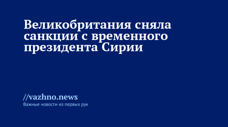 Великобритания отменила санкционные ограничения в отношении президента Сирии на переходный период Ахмеда аш-Шараа. Сообщение об этом датировано 7 ноября и опубликовано на сайте британского Минфина, где изложены детали принятых мер и их сроки.