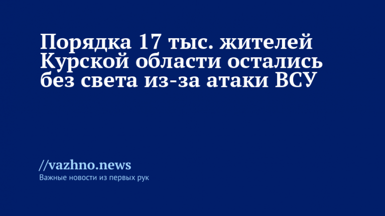 Объекты энергетической инфраструктуры в приграничных участках Курской области подверглись удару со стороны Вооруженных сил Украины (ВСУ). По сведениям, опубликованным 7 ноября, в результате этой атаки примерно 17 тыс. потребителей остались без электропитания, сообщил губернатор Александр Хинштейн в своем Telegram-канале.