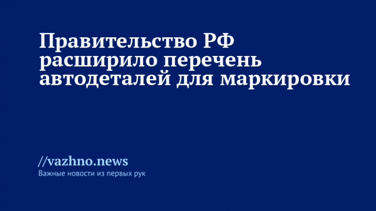 Правительство РФ расширило список товаров, участвующих в эксперименте по маркировке автокомпонентов в государственной системе «Честный знак»: соответствующее постановление уже подготовлено и подписано. Об этом 7 ноября сообщает ТАСС.