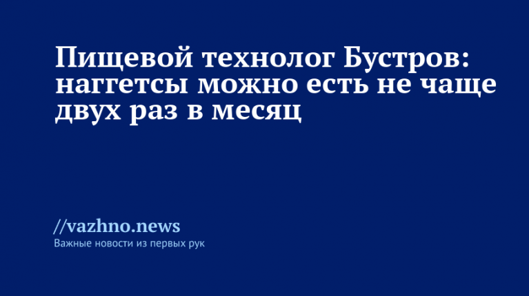 По словам пищевого технолога и доцента кафедры индустрии питания, гостиничного бизнеса и сервиса Университета Росбиотех Дмитрия Быстрова, безопасная частота употребления наггетсов составляет не более двух раз в месяц. Об этом он сообщил в пятницу, 7 ноября.
