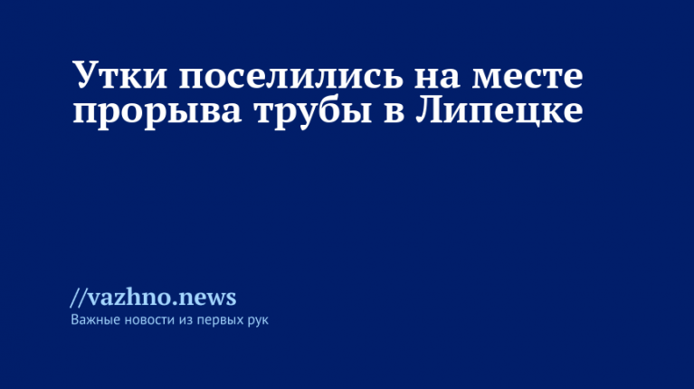 В Липецке в месте, где произошел прорыв водопроводной трубы, были замечены утки. Коммунальное «озеро» возникло возле долгостроя на улице 50 лет НЛМК, и птицы начали использовать образовавшийся водоем.