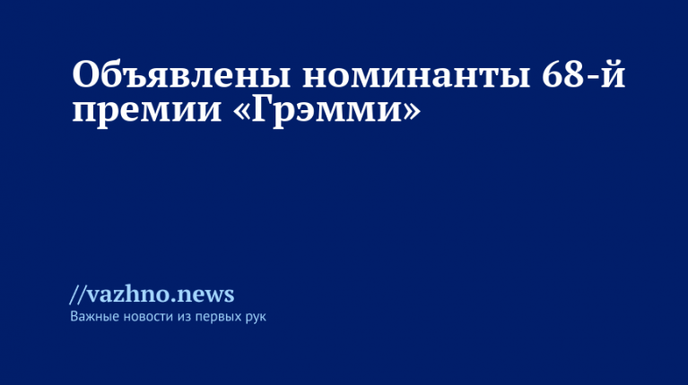 Организаторы 68-й церемонии вручения музыкальной премии «Грэмми» в пятницу, 7 ноября, опубликовали перечень номинантов. Самым отмеченным по числу номинаций стал рэпер Кендрик Ламар, которому досталось девять упоминаний.