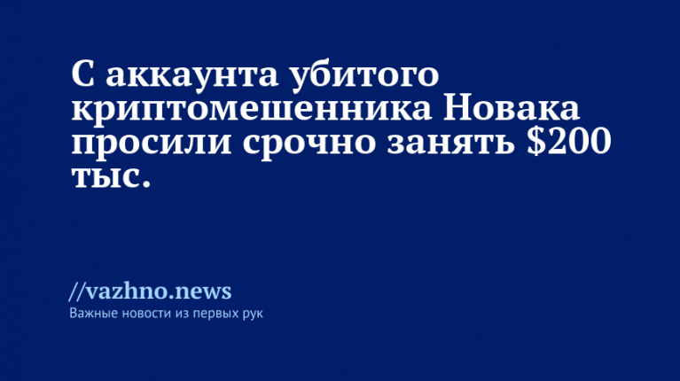 После убийства Романа Новака, известного как криптомошенник, в Объединенных Арабских Эмиратах с его аккаунта якобы была отправлена мошенническая просьба о займе на $200 тыс. Скриншот переписки от 7 ноября попал в распоряжение «Известий».