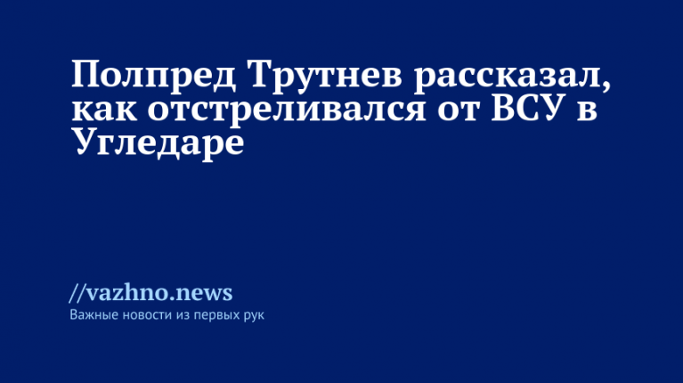 Полпред Трутнев рассказал, как отражал атаки ВСУ в Угледаре