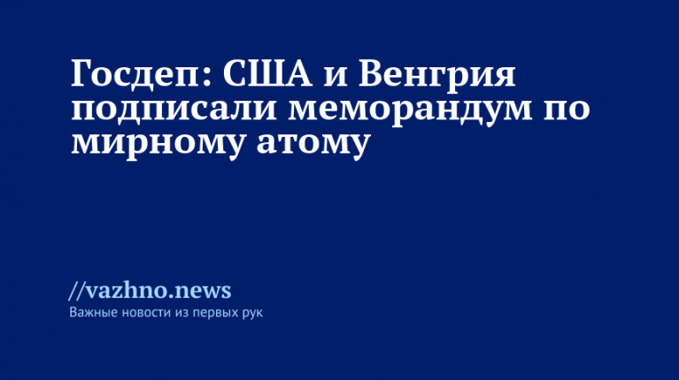 Соединенные Штаты и Венгрия заключили меморандум о взаимопонимании в сфере ядерной энергетики. Об этом 7 ноября сообщила пресс-служба американского Госдепартамента на своем сайте.