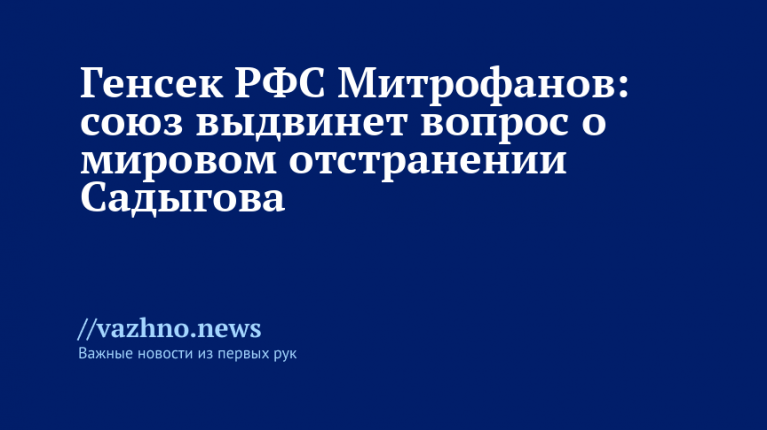 7 ноября генеральный секретарь Российского футбольного союза (РФС) Максим Митрофанов заявил, что организация намерена обратиться в Международную федерацию футбола (ФИФА) с просьбой распространить на мировом уровне запрет на футбольную деятельность, наложенный на бизнесмена и бывшего инвестора подмосковного ФК «Химки» Туфана Садыгова.