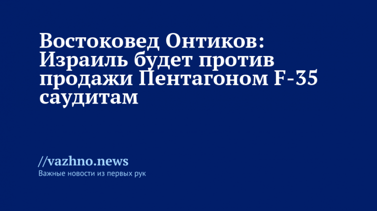 Востоковед Онтиков: Израиль против продажи США F-35 саудитам