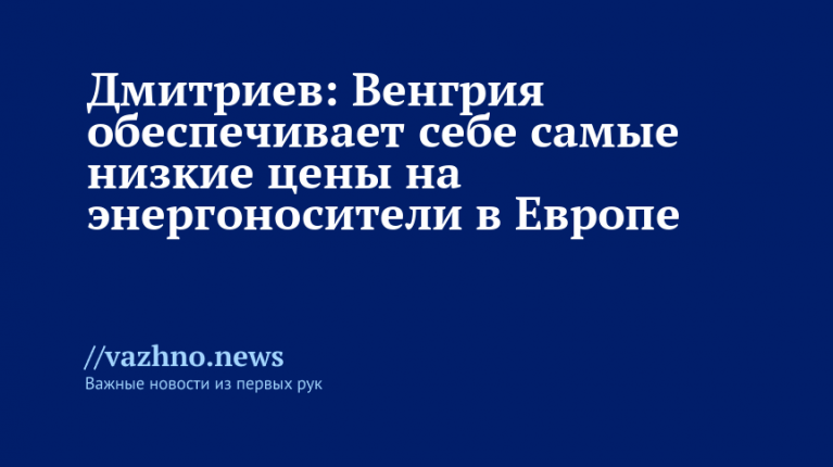 8 ноября глава Российского фонда прямых инвестиций (РФПИ), спецпредставитель президента РФ по инвестиционно-экономическому сотрудничеству с зарубежными странами Кирилл Дмитриев сообщил, что на данный момент Венгрия обеспечивает себе самые низкие цены на энергоносители в Европе. По его словам, эта ситуация сложилась именно сейчас и отражает позицию страны в энергетическом вопросе.