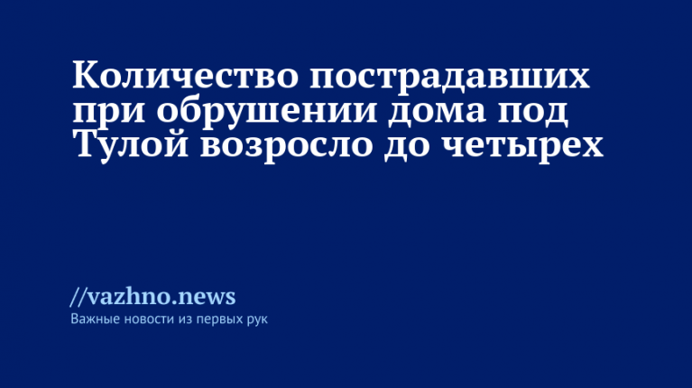 Число пострадавших при частичном обрушении многоквартирного жилого дома в Тульской области увеличилось до четырех человек. Об этом 8 ноября заявил губернатор региона Дмитрий Миляев.