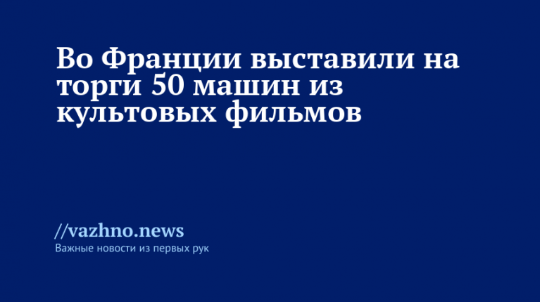 Во Франции выставили на торги 50 машин из культовых фильмов. Как передает телеканал «Известия», большая часть выставленных автомобилей — подлинники, которые действительно участвовали в съемочном процессе. Сообщение о подготовке этих торгов поступило от того же телеканала «Известия», подтвердившего подлинность многих экспонатов.
