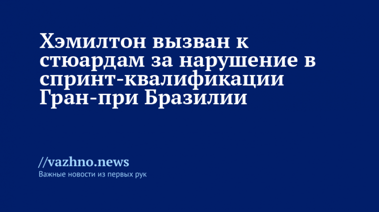 Хэмилтон вызван к стюардам за нарушение в спринте на Гран‑при Бразилии