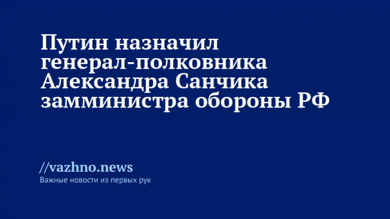 Президент России Владимир Путин назначил генерал-полковника Александра Санчика на пост заместителя министра обороны РФ. Соответствующий указ был опубликован 8 ноября на портале официального опубликования правовых актов.