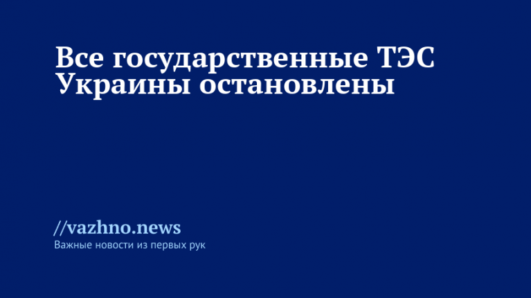 Госкомпания «Центрэнерго» 8 ноября сообщает, что все государственные тепловые электростанции (ТЭС) Украины остановлены, генерация полностью отсутствует.