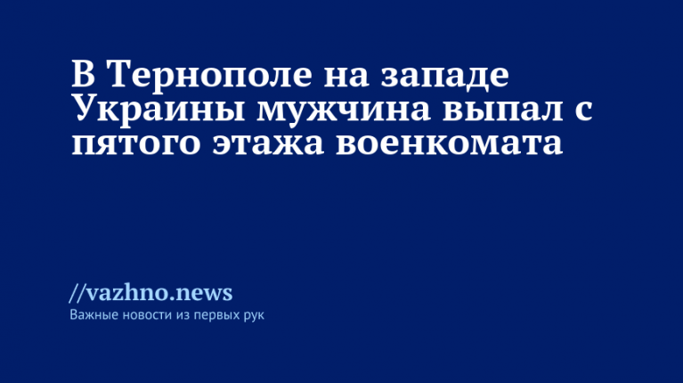 В Тернополе на западе Украины мужчина упал с пятого этажа здания территориального центра комплектования (ТЦК, украинский аналог военкомата). Об этом 8 ноября сообщает Тернопольский городской военный комиссариат.