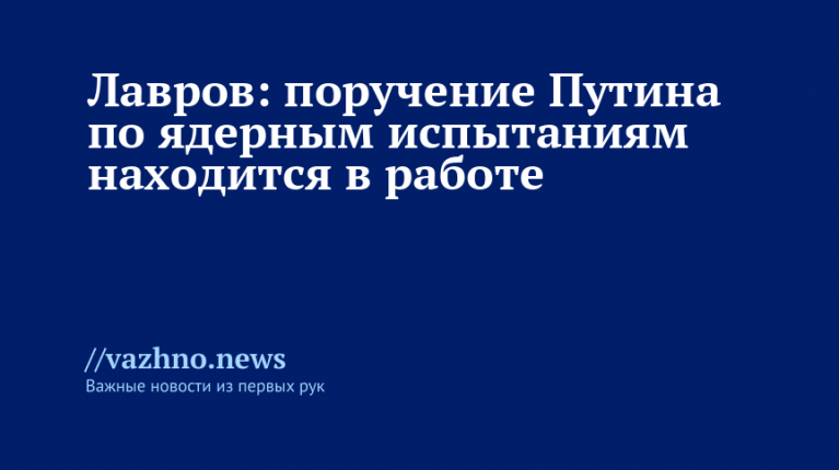 Министр иностранных дел России Сергей Лавров 8 ноября сообщил, что поручение президента РФ Владимира Путина по итогам заседания Совета безопасности о ядерных испытаниях уже принято к исполнению и в настоящее время выполняется.