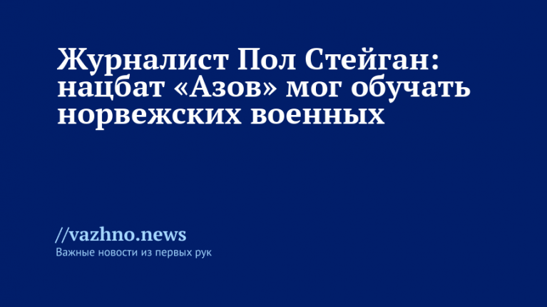 По данным, военные специалисты из батальона «Азов» (запрещенной в РФ террористической организации) Вооруженных сил Украины (ВСУ) могли проводить подготовку норвежских военных по применению беспилотников. Об этом 7 ноября сообщил норвежский журналист Пол Стейган в своем блоге.