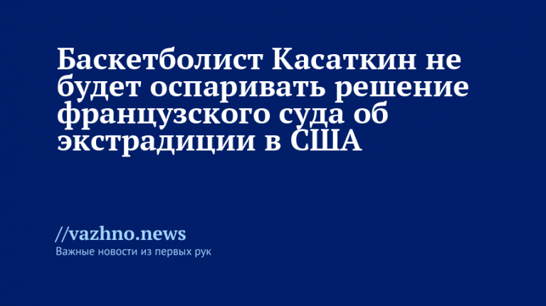 Российский баскетболист Даниил Касаткин отказался оспаривать судебное решение об его экстрадиции в США. Об этом 8 ноября сообщил его защитник Фредерик Бело.