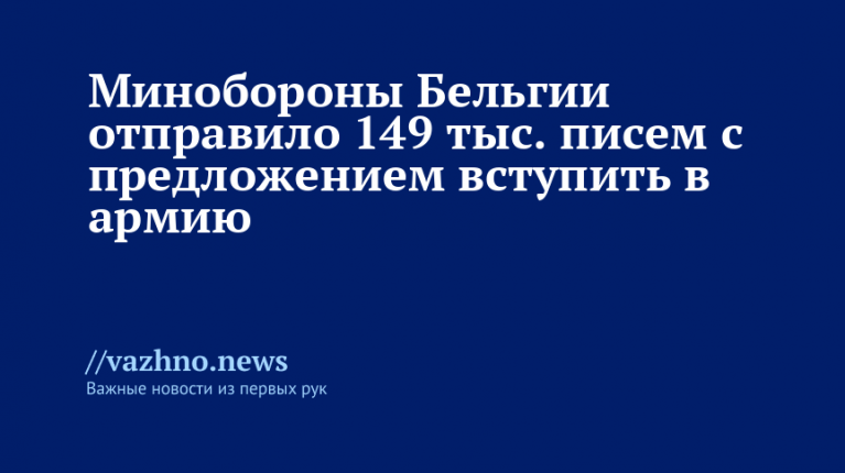 Министерство обороны Бельгии разослало письма всем гражданам страны, достигшим 17 лет, с приглашением рассмотреть возможность добровольной службы в армии. Об этом 8 ноября сообщил глава ведомства Тео Франкен.